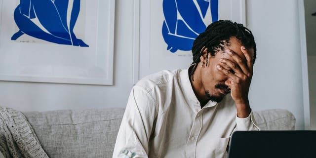 Man embarrassed because his auto-fill is revealing his search history. (CyberGuy.com)