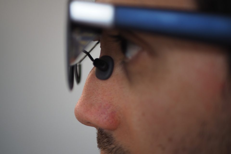 An example of what the 1S’s electrochromic lenses look like with maximum dimming.