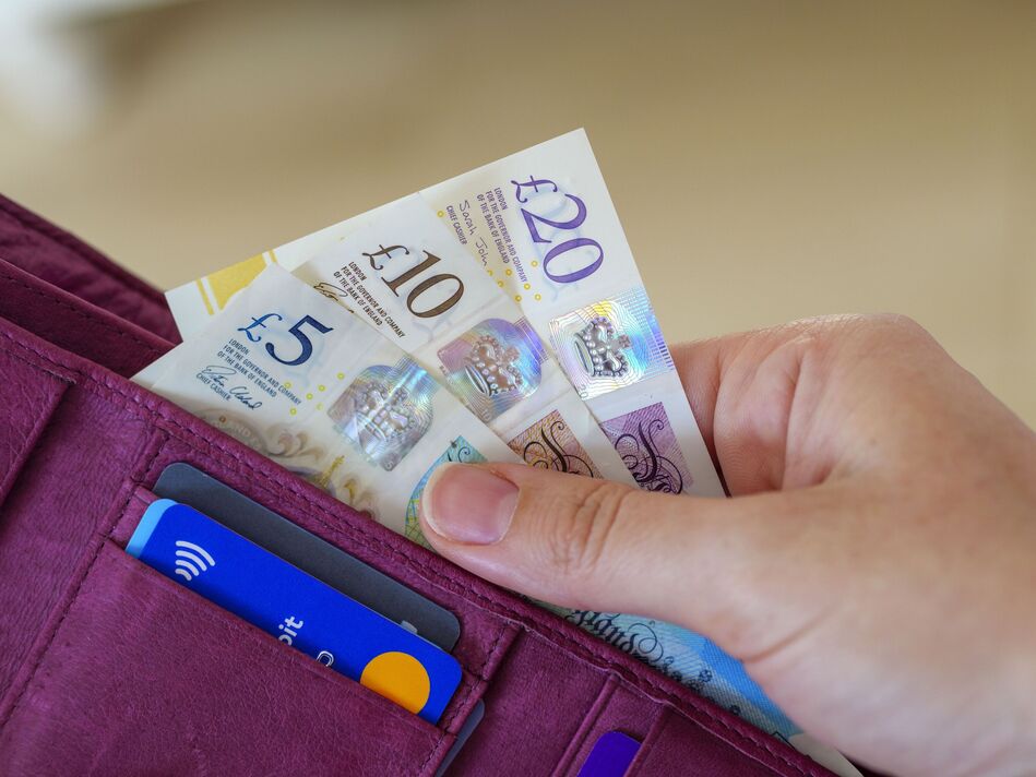 Taking out UK pound notes in cash out of purse