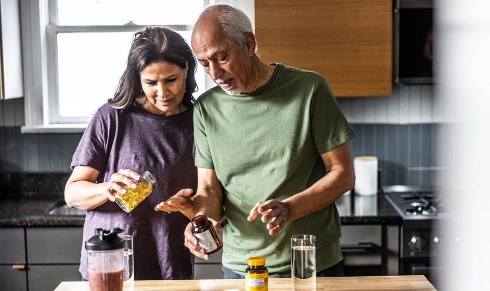 A couple taking supplements